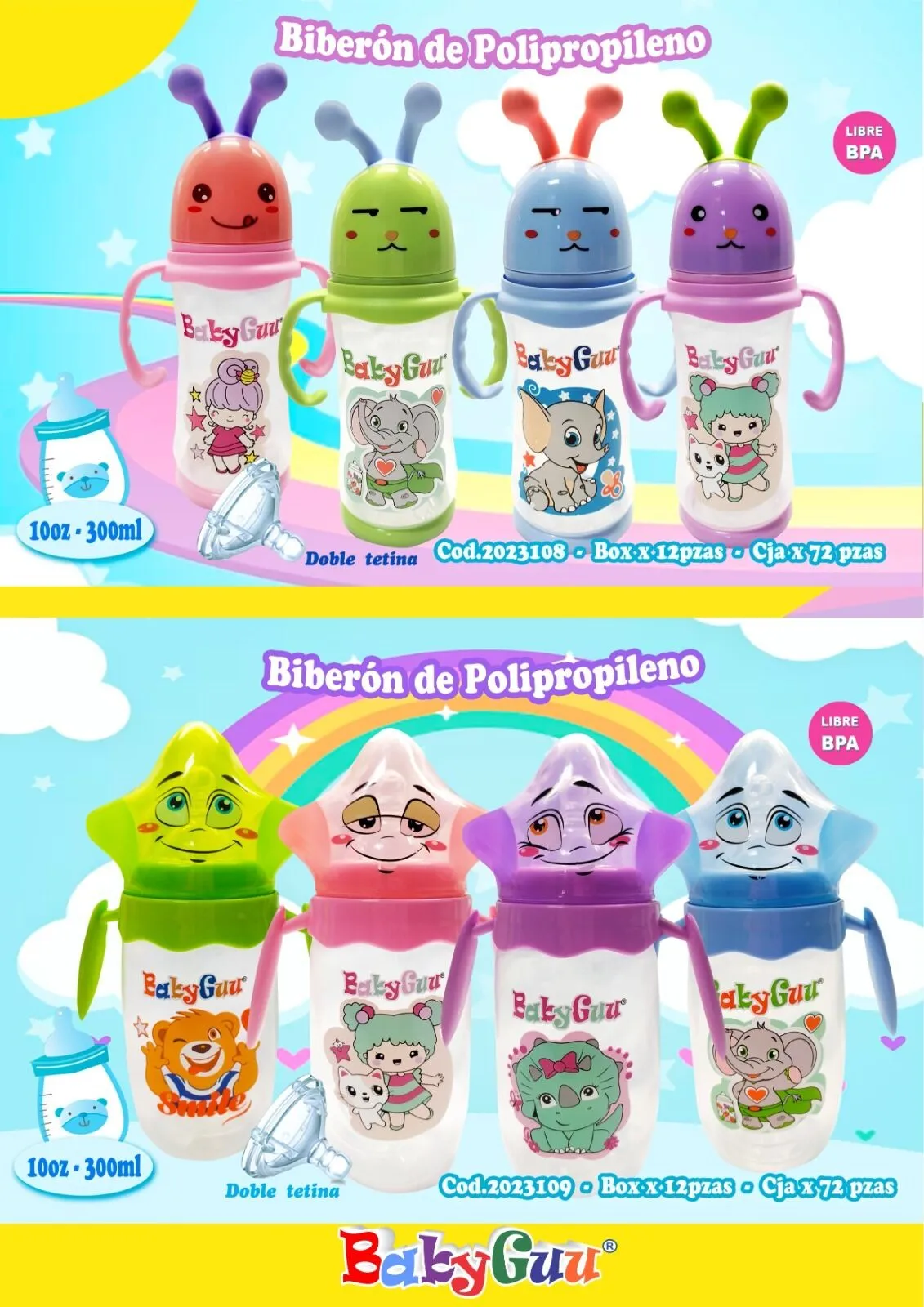 - Características: Libre de BPA, Doble tetina, Tapa de estrella.