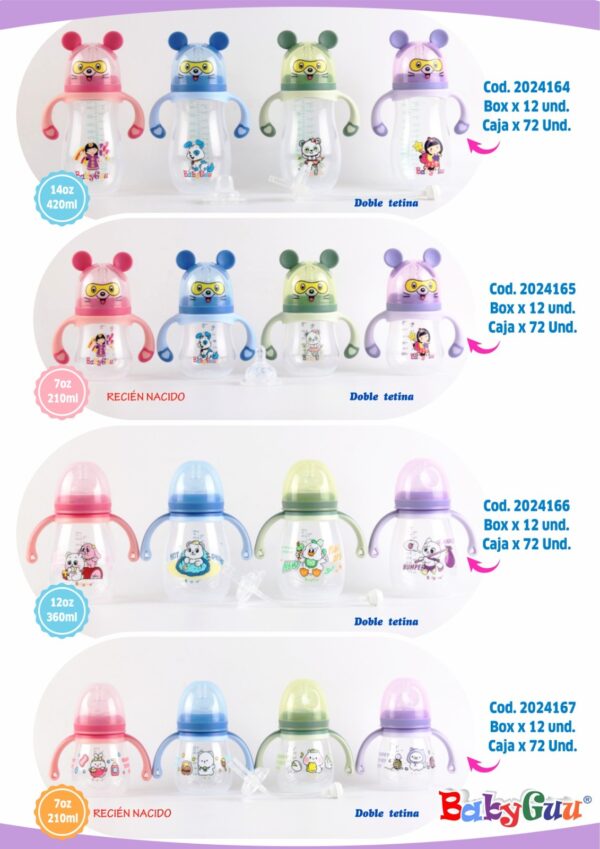 - Características: Recién nacido, Doble tetina, Tapa de oso, Asas.