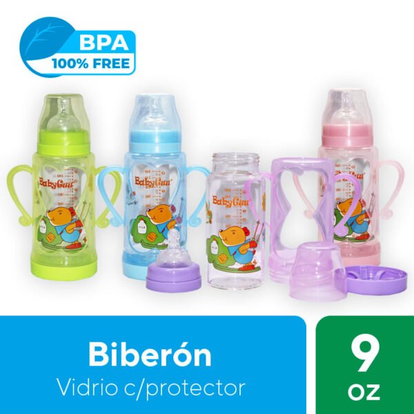 Biberón VIDRIO c/protector | (9) oz / 260 ml | Libre de BISFENOL A |
